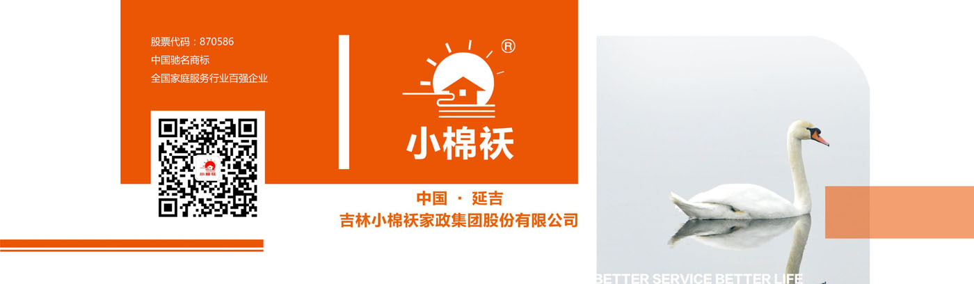 吉林小棉襖家政集團股份有限公司成立于2004年6月3日,注冊資本4020萬元,主營業務有物業管理、培訓學校、家政服務,勞務派遣、保安、保潔服務等。先后安置下崗職工和農村剩余勞動力就業二萬多人。公司先后榮獲:全國家庭服務行業知名品牌單位、全國優秀民辦職介機構、全國家庭服務行業百家誠信企業、中國清洗保潔十大標兵企業、吉林省十大服務業品牌、吉林省守信用重合同單位、吉林省馳名勞務品牌、吉林省誠信維權先進單位、吉林省清費者滿意單位等榮譽稱號。2011、2012連續二年被評為全國家庭服務行業百強企業。